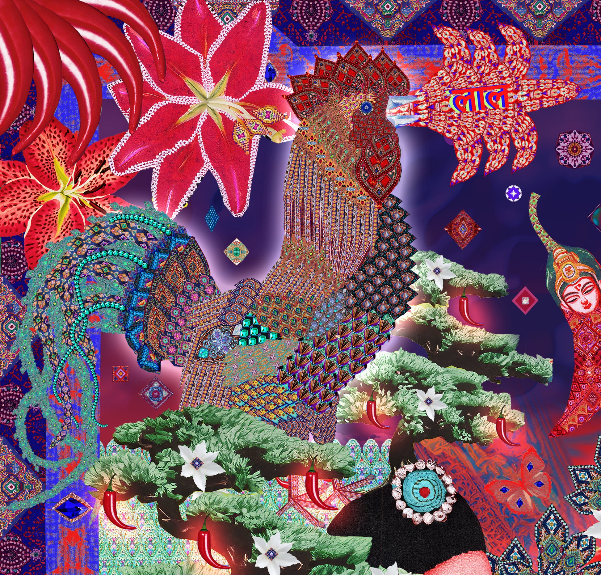 Printed on 100% organic cotton sateen featuring an original pop-surrealist multimedia collage by textile designer Megan Merhar.