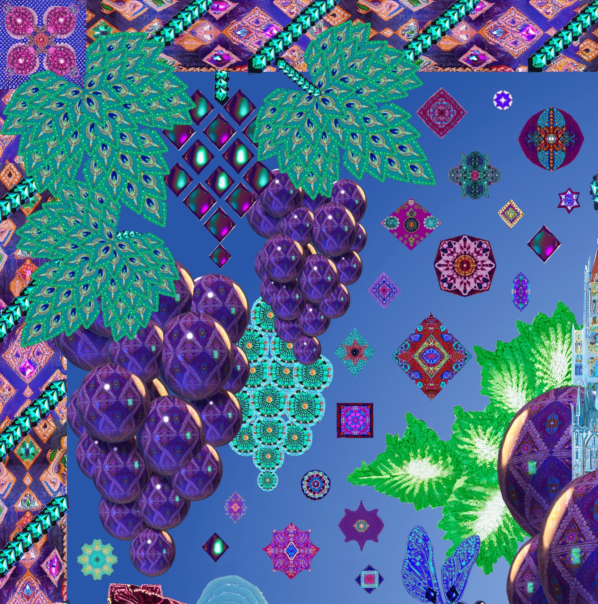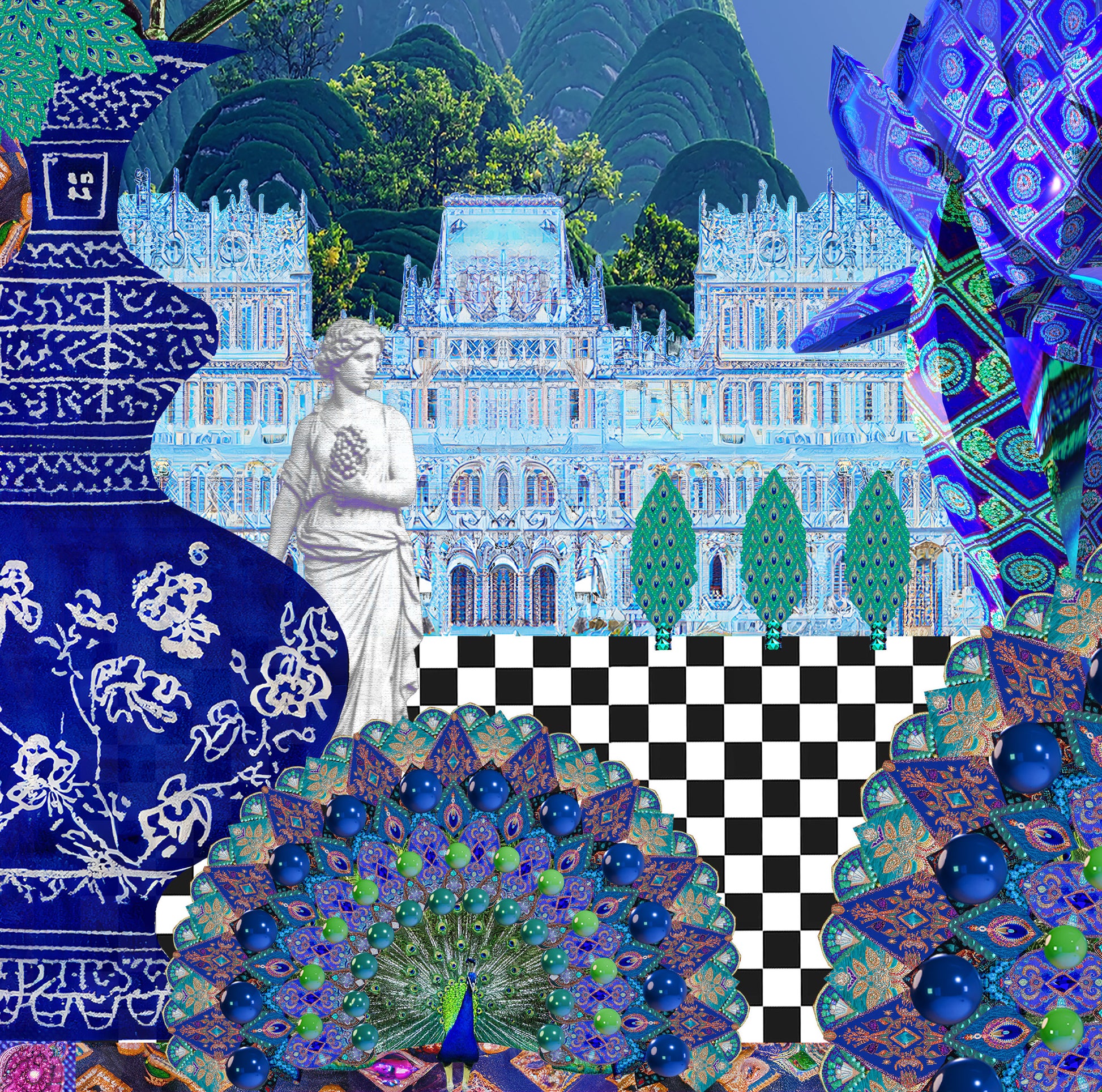 Printed on 100% organic cotton sateen featuring an original multimedia collage by textile designer Megan Merhar.